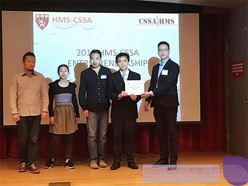 留學新加坡國立大學、英國牛津大學胡博士,從易寒開先生手中接過本次大賽最高獎項,“哈佛醫(yī)學院華人啟迪愛創(chuàng)獎”