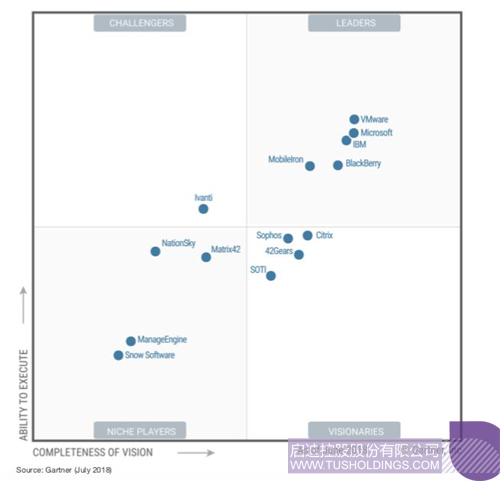 近日,知名研究咨詢機構 Gartner 發布了 2018 年 UEM 魔力象限《Magic Quadrant for UnifiedEndpoint Management Tools》,啟迪國信再次上榜。這是啟迪國信連續三年進入Gartner 魔力象限,也是唯一一家榜上有名的中國企業。